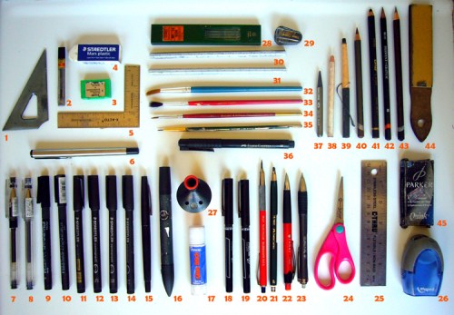I have been asked to write a post on my sketching tools, and it took a while to organize my ‘shooting session’.
