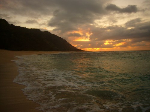 Sunset on the last North Shore, O’ahu, Hawai’i. March 2010