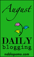 Here is the happy Nablopomo August Badge. The theme of this month is ‘Green’. For me, it will mean renewal more than sustainability (a sort of spa for the mind), but I might find some interesting green homes to feature. Of course green is the color of envy, but we shan’t talk about that 😉 Here are couple of badges for good measure.