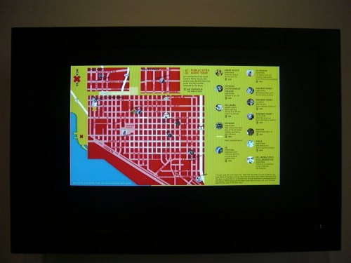 The Space Invader Walk. Video. 10 Minutes. Invader, best known for his use of ceramic tiles to recreate the Space Invader video game. The walk in downtown San Diego, once mapped, reveals the outline of a Space Invader. A sort of Urban Etch-a-Sketch. The artist uses GPS tracking technology.