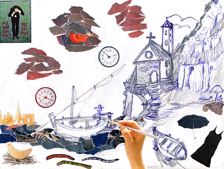 Mare Mosso Act II. Graphite drawing by Gianni Aiello. Collage. March 18,2011