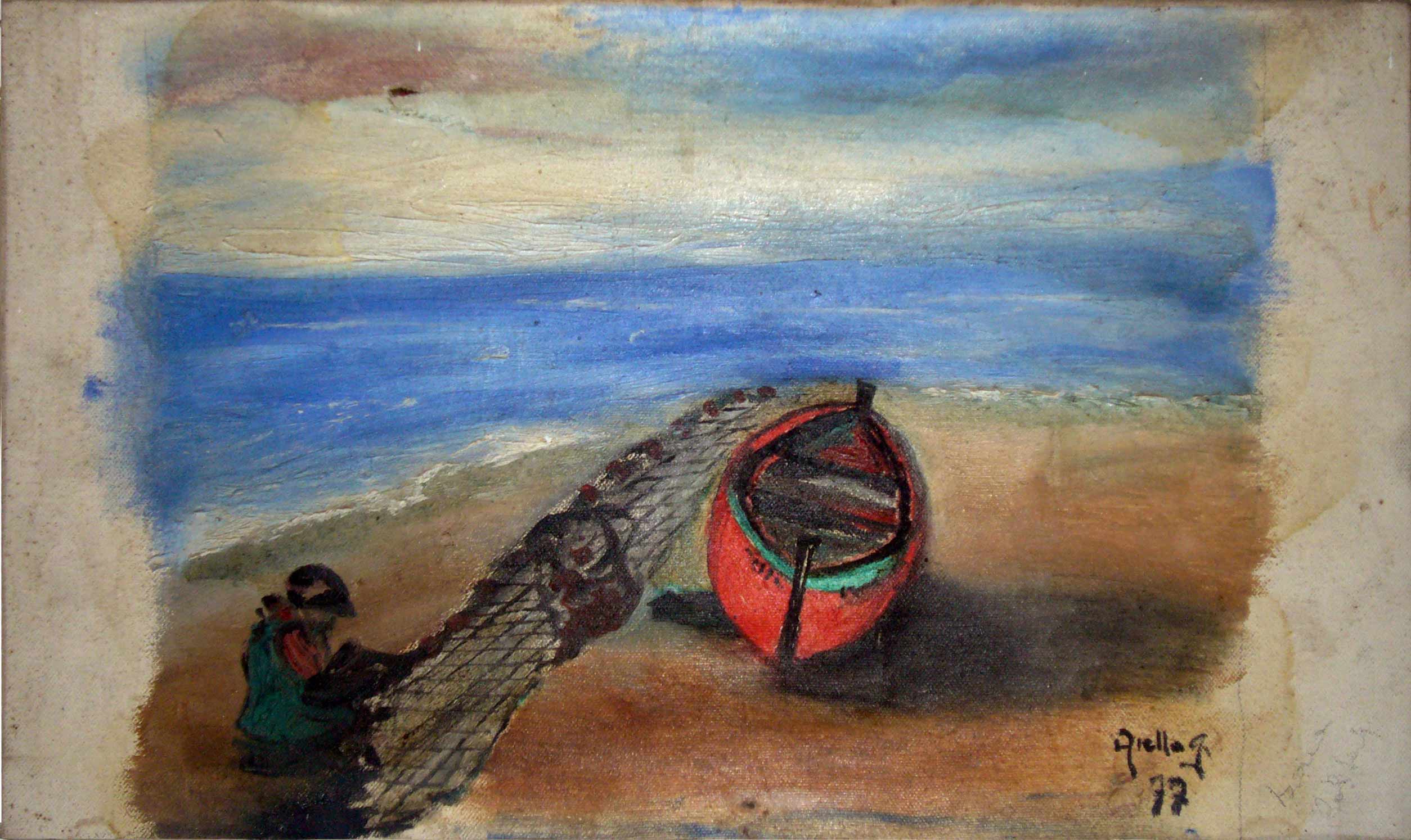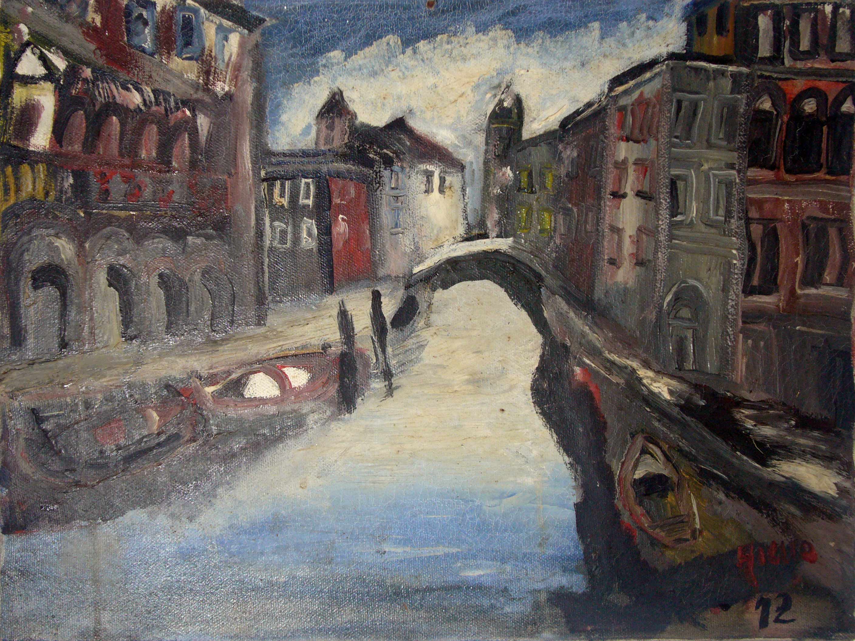 As a young policeman in Venice in the 60’s, my dad crashed art classes at the Accademia and hung out with artists and misfits. I collected here the paintings from his youth that are still in the house where he grew up. He lives there, beachfront, near the fishing shack his father built and that he turned into a work of art (more on this later).