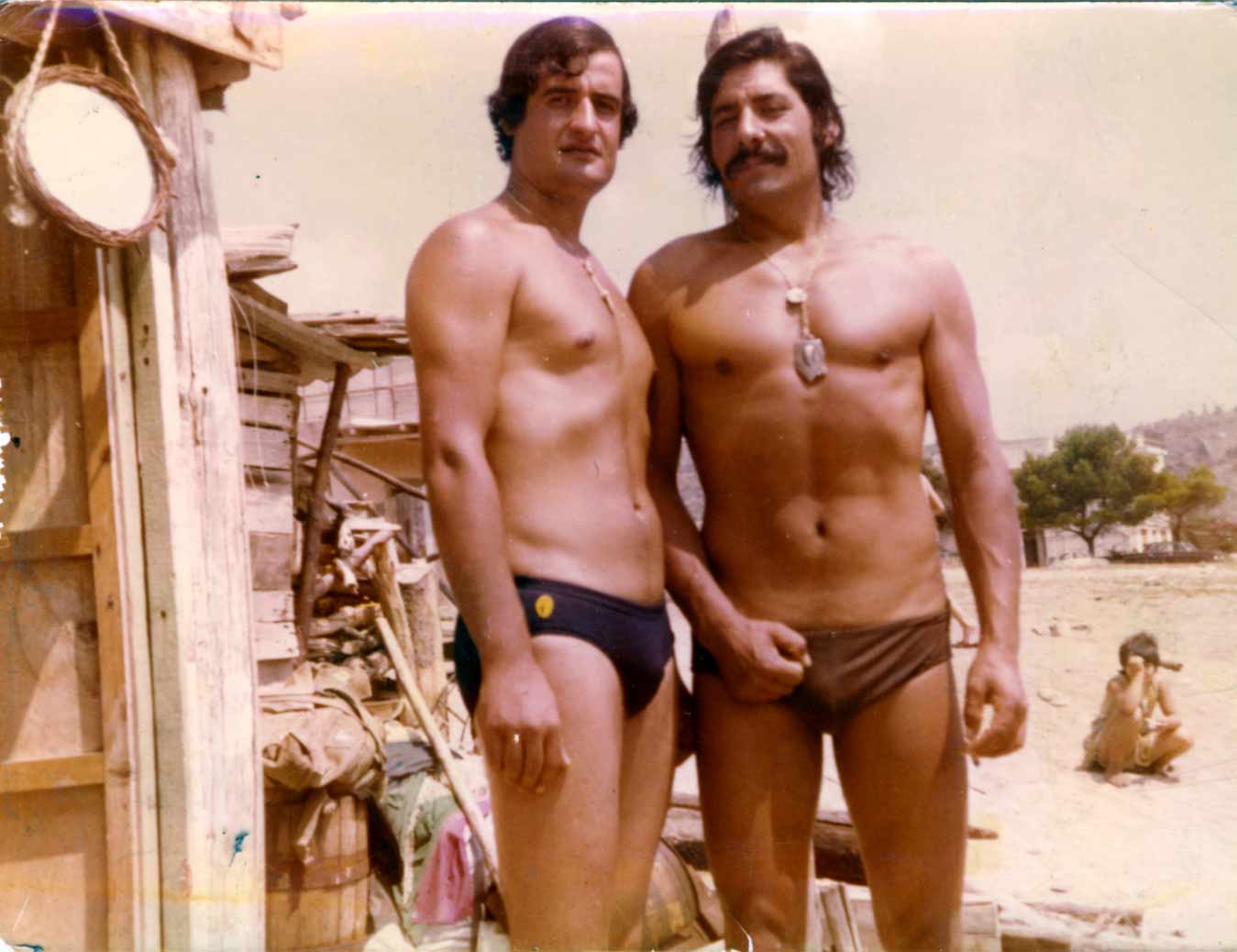 Gianni Aiello (Papa’) with cousin Giuseppe, next to the fishing shack La Baracca. 1972 (to be verified;))