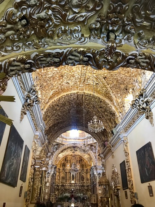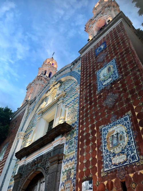 What a magical city: Baroque churches where Tllaloc and Quetzacoatl are venerated, the fusion called Barroco Indígena ( San Francisco de Acatepec and Santa María de Tonantzintla – Barragán’s favorite church), Aztec temples and cities, 400 year old stone buildings, the tallest church towers in Mexico and the greatest covered stepped pyramid in the world ( Teocalli de Cholula)…finally the oldest public library of the Americas. Puebla is where the battle celebrated during Cinco de Mayo took place and where the Mexican Revolution started. Wow.