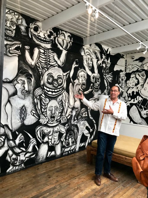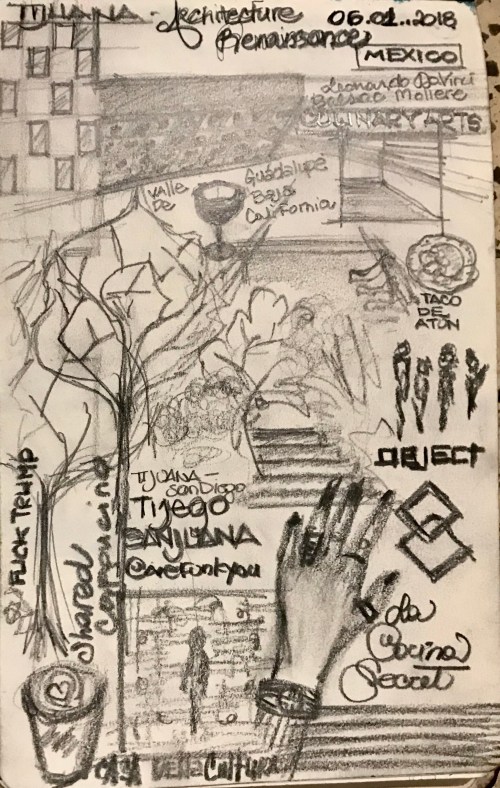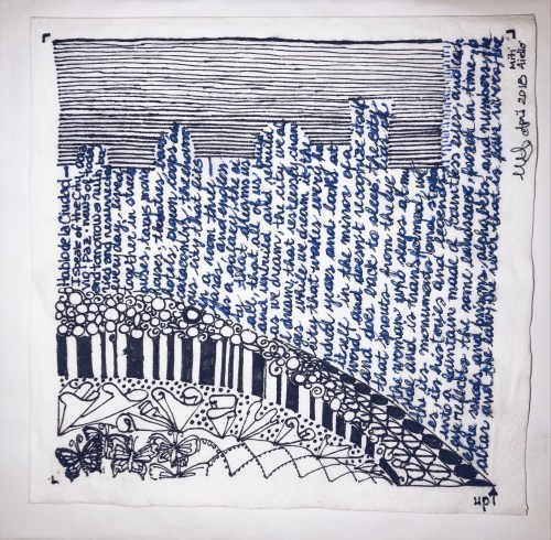 Napkin Sketch for fundraiser auction; poem La Ciudad by Octavio Paz. Fountain ink on Napkin paper. April 2018.