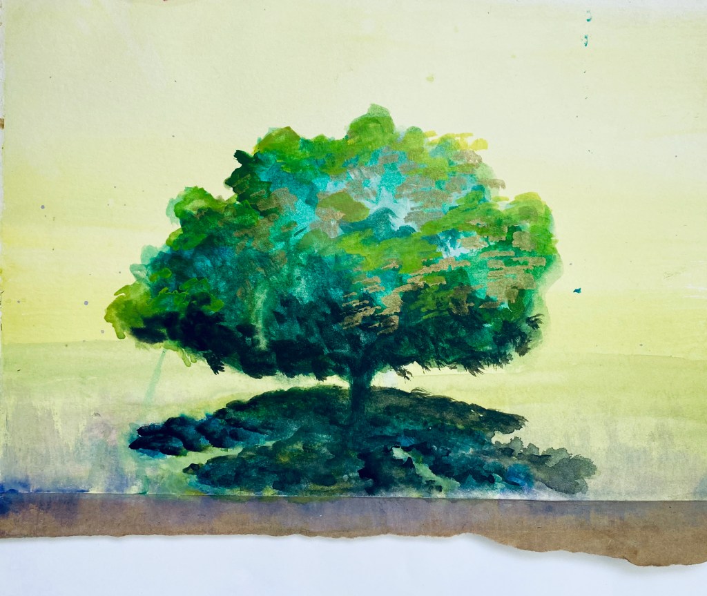 In Balboa Park i have my two favorite meditation trees, where a squirrel always likes to hang out and we have become friends. One of these trees is pictured in the watercolor above. I have also been looking at and taking photos of trees –aiming to combine spirituality, atmosphere and nature.