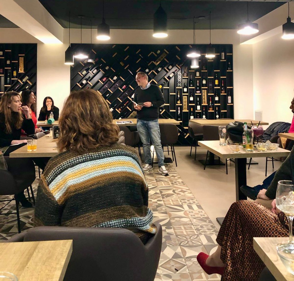But the group I found on Instagram, thanks to my writer friend and coffee shop expert John Rippo, met every week in the basement of a large coffee shop attached to a pub/restaurant, with indoor and outdoor spaces near a small urban park.