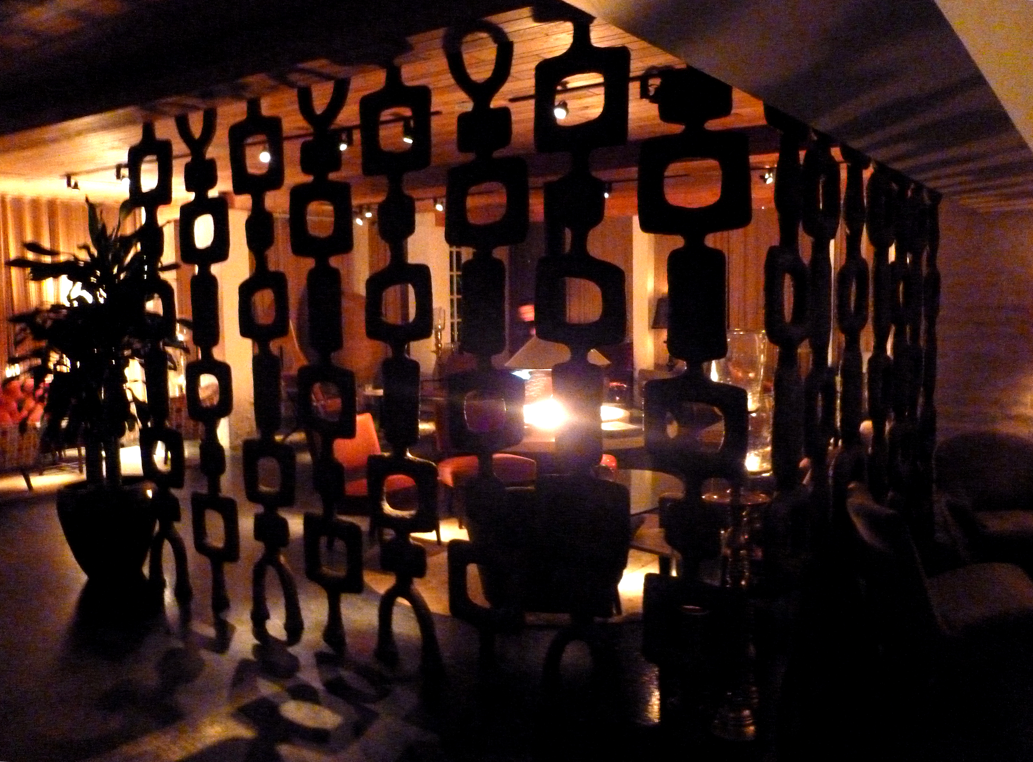 This is Barba Azul, a cabaret from another era, where salsa is danced from midnight till dawn, where there is an altar upstairs (I have seen them in parking lots, too) and where the exit is a tiny rectangle carved into a decorated garage door- something out Pinocchio’s Paese dei Balocchi (toyland)…or a circus in a Fellini movie. One of the many surreal vignettes of this metropolis.