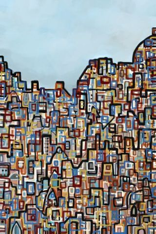 You can see the results of their efforts here.  My objective was not to have a typical gallery show, but combine all the work as in a collage, interspersing the canvases with the prints of the full scale work the students provided. It was a challenge to combine different shapes, colors (art curating and gallery display being an artform of their own) and be true to some sort of grid. The wall is bursting with energy. This was an Art intervention/injection for our architecture school!