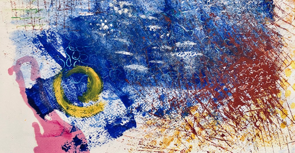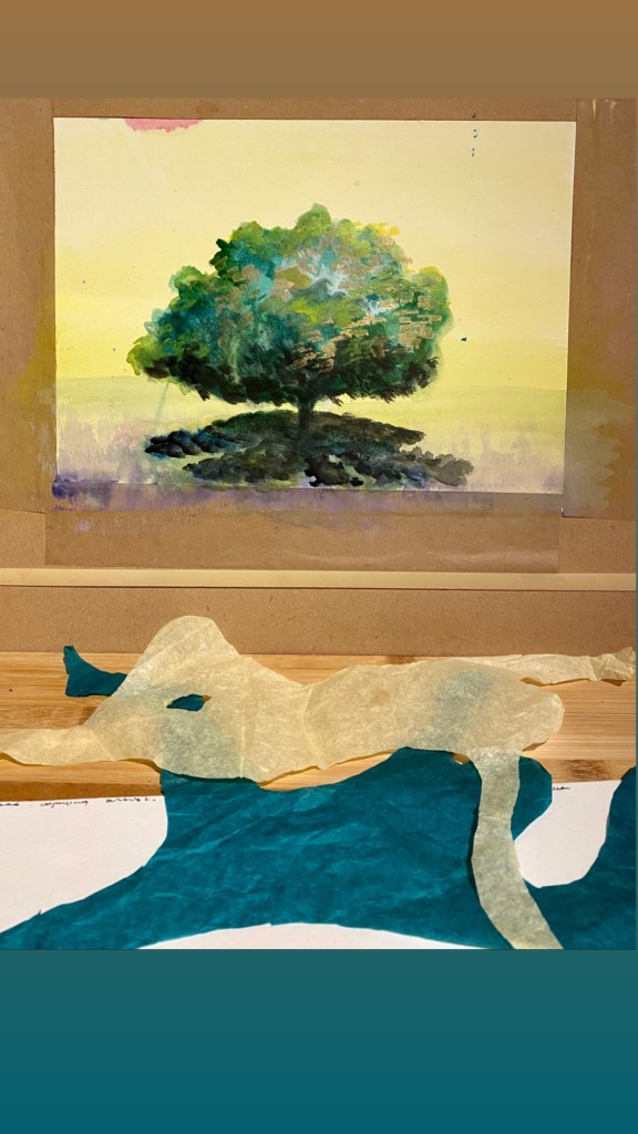 This summer I took A LOT of art classes online to stay sane and “force” myself to show up to my art practice. I am on a journey to develop an authentic contribution and I am exploring a lot of techniques and art workshops to find my voice amongst the languages of art. There is a lot of experimenting… right now I’m more sure of what is “ not me” than what is… but the experience is filled with light and play. There is discipline, too.