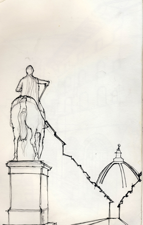 View of Duomo from Piazza Santissima Annunziata. Firenze. Ink on paper. 2006