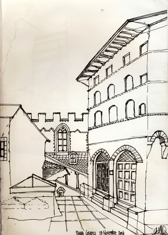 Piazza as outdoor living room. Firenze. Ink on paper. 2006