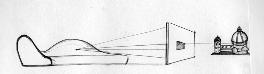 Diagram of public art installation project in relation to the view/city. Graphite on paper. 2006