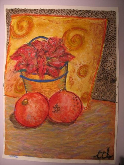 Pomegranate and Bouganvillae. 2004. Pastels and watercolor on pa