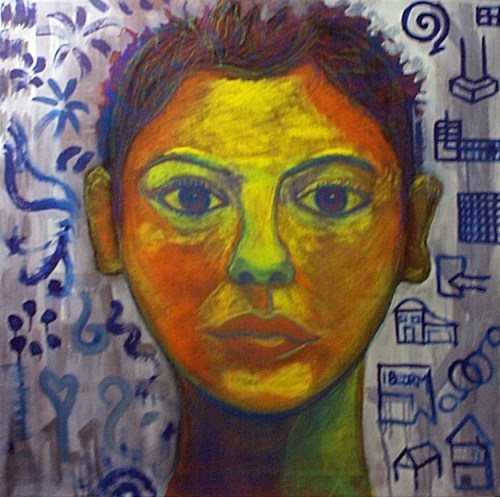 Self-portrait/Dychotomy. Acrylic on canvas. 1999.