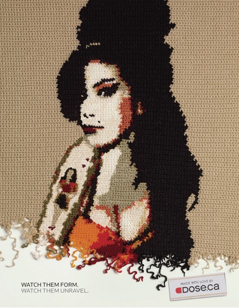 Amy Winehouse en crochet. Dose. ca campaign by rethinkcommunication, image via their website